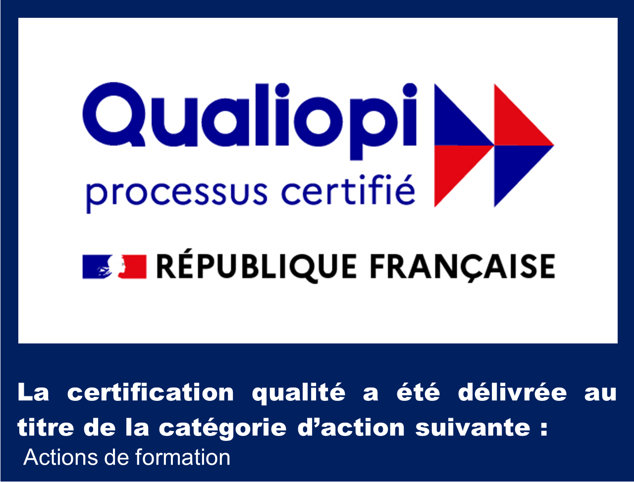 – La certification Qualiopi atteste de la qualité des processus mis en œuvre pour les actions de formation (objectifs, moyens, suivi, amélioration continue). Elle repose sur un référentiel national unique évalué lors d’un audit réalisé par un organisme certificateur accrédité.